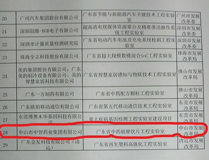 中智药业获批建立“广东省中药破壁饮片工程实验室”