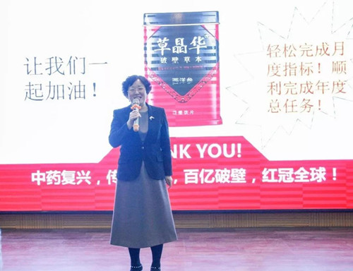 唐人医药董事长王冠珏在启动会上讲话