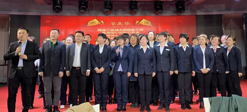 会中,王冠珏董事长带头讲话,为团队加油、打气。王董着重强调,大家一定要时刻谨记任务,锁定目标,坚定不移地向着年度目标的方向不断冲刺。王董事长说,“摆正心,张开嘴,用专业,把好的商品,卖给对的人”。