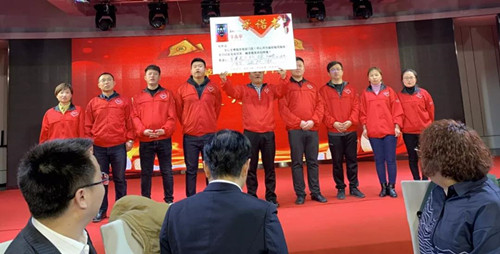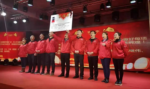 草晶华团队展示并宣誓:全心全意服务每家门店,尽心尽力做好每项服务,全力以赴完成任务,精准服务共创辉煌!