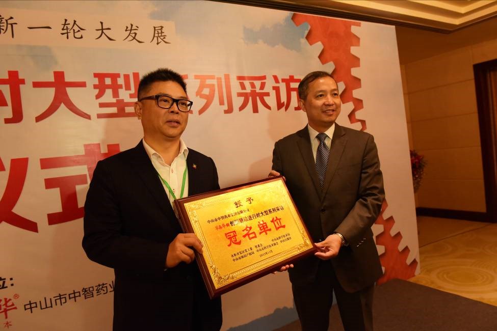 2015年11月28日上午,以中智药业(3737.HK)独家生产的“草晶华·破壁草本”品牌冠名的“中山创新驱动进行时大型系列采访启动仪式”,在中山大信商务酒店隆重举行。中山市市委书记、市人大常委会主任薛晓峰,市委常委、宣传部长唐颖,市委常委、火炬区、翠亨新区党工委书记侯奕斌,市人民政府副市长吴月霞等领导,与2015年度吴阶平医药创新奖获得者陈士林研究员,中山日报报业集团社长方炳焯、总编辑郑万里,中智药业集团董事长赖智填,副总经理兼总工程师成金乐、副总经理曹晓俊以及各镇区领导和代表,新闻媒体记者共50余人参加了启动仪式。
