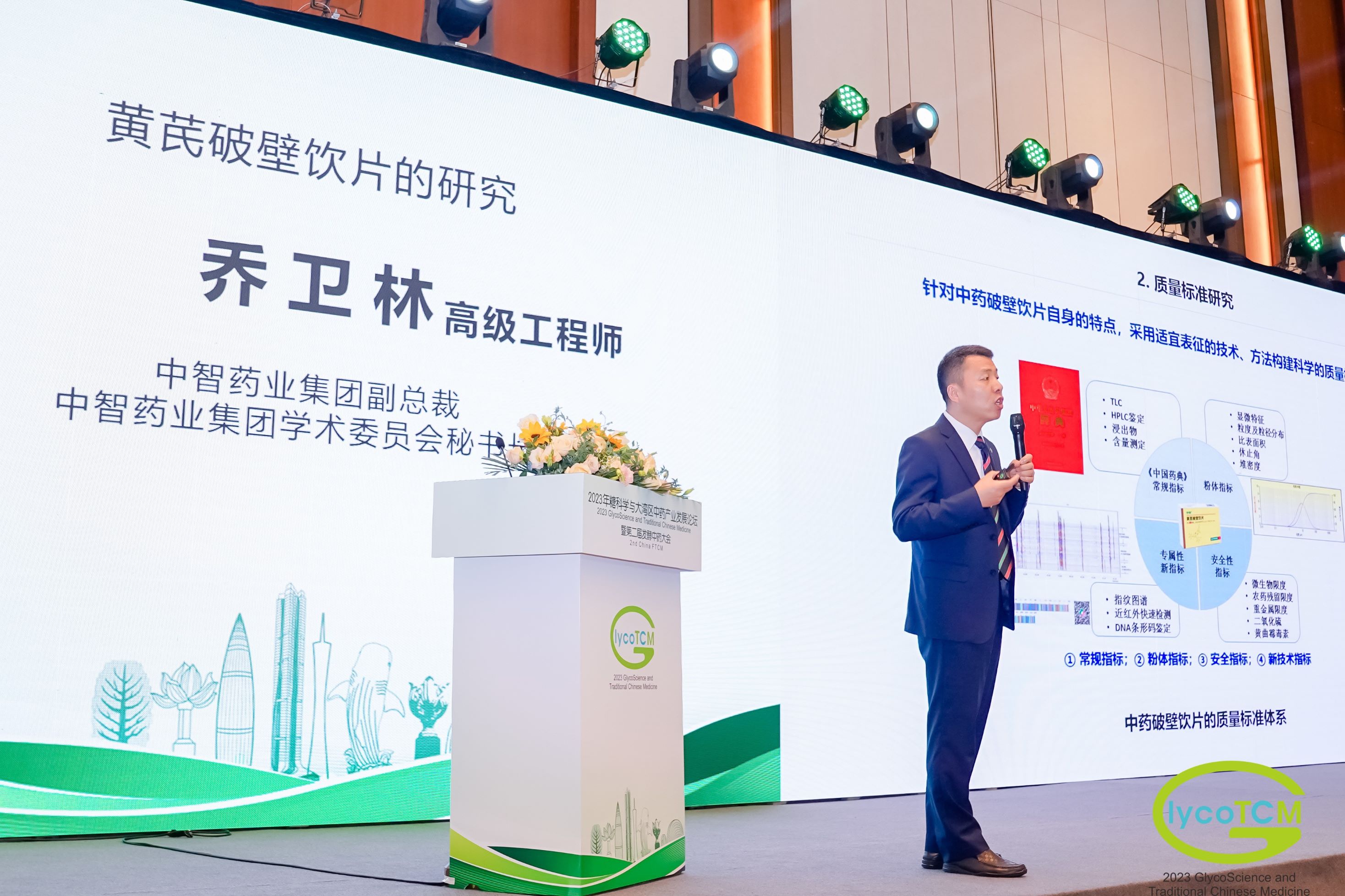 中智药业集团副总裁乔卫林参加会议并作《黄芪破壁饮片的研究》报告。乔卫林以黄芪破壁饮片为范例,介绍了中药破壁饮片传承创新的研发初衷、研究体系、研究进展和相关创新成果,并表示将持续对中药破壁饮片开展更深入的研究,让科技成果转化应用助力于产业发展。