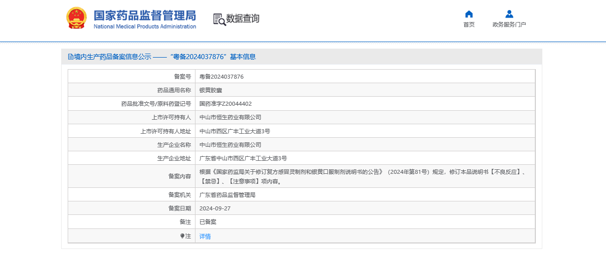 根据《国家药监局关于修订复方感冒灵制剂和银黄口服制剂说明书的公告(2024年第81号)》要求,企业应在2024年9月27日前报省局备案进修订包装、说明书等内容,详细情况如下: