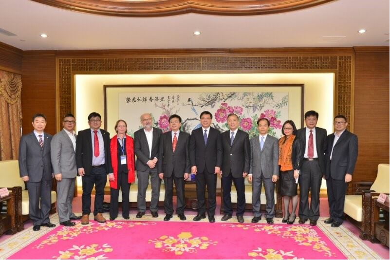 12月7日下午,中智药业集团董事长赖智填,副总经理、总工程师成金乐陪同澳门科技大学校长刘良、诺贝尔医学奖获得者埃尔文·内尔教授等一行参加完 “生物物理与创新技术引领医学未来研讨会暨风湿病研究国际合作联盟成立大会”后,拜会了中山市委书记陈如桂等领导。