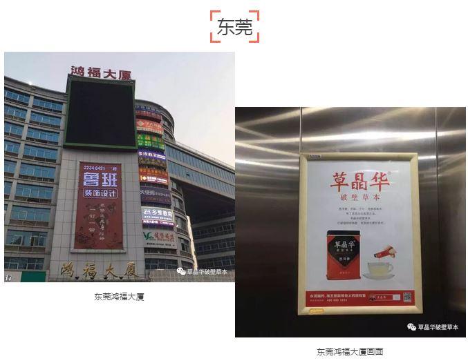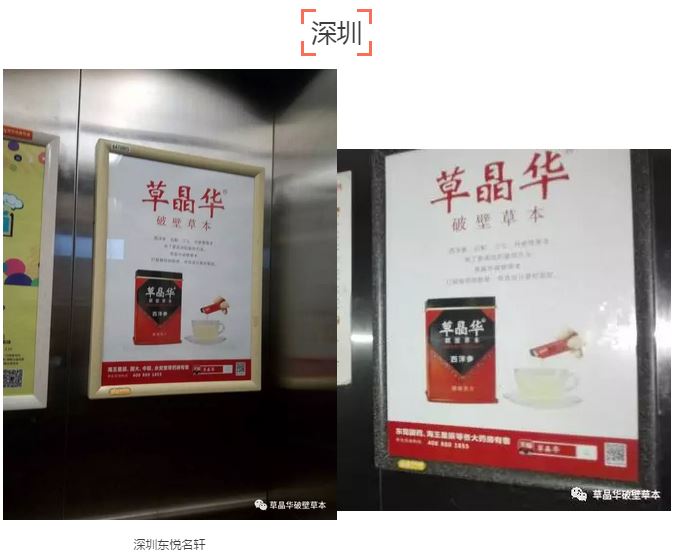 2月18日,深圳、长沙、东莞、中山四城分众电梯框架海报、楼宇电视等媒介全城覆盖主流商圈、社区(如深圳,分众媒体框架近万个,草晶华覆盖80%以上),让更多城市主流人群了解现代中药养生文化,让更多消费者了解“更好吸收,服用便捷”的破壁草本的价值!