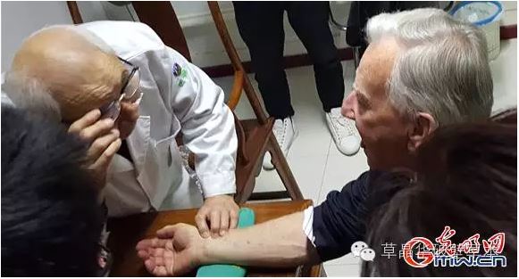澳大利亚中国工商业委员会会长,澳大利亚前议长肯.史密斯11月14日由澳洲飞往青岛,中途在中国北京转机。长途的奔波劳累,72岁的史密斯会长在到达青岛后出现了感冒症状。在非药委会长单位青岛医保城中医堂参观交流过程中,史密斯会长体验了独特的中医诊疗方式,副主任医师曹明生为他配了治疗感冒的中药,一个小时后史密斯会长感觉感冒症状明显好转。