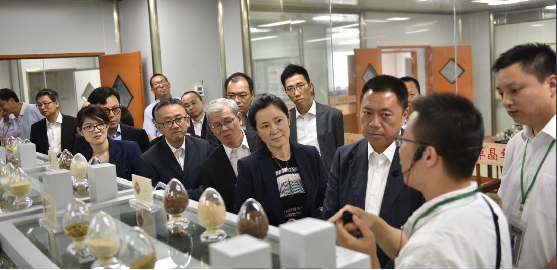 在三楼国家中医药管理局中药破壁饮片技术与应用重点研究实验室,草晶华破壁草本专利展示橱窗,彰显了中智药业雄厚的技术创新实力,梁维特和澳门特区代表团成员信服的目光追逐着一张张专利证书,有人不禁感叹“好犀利”。