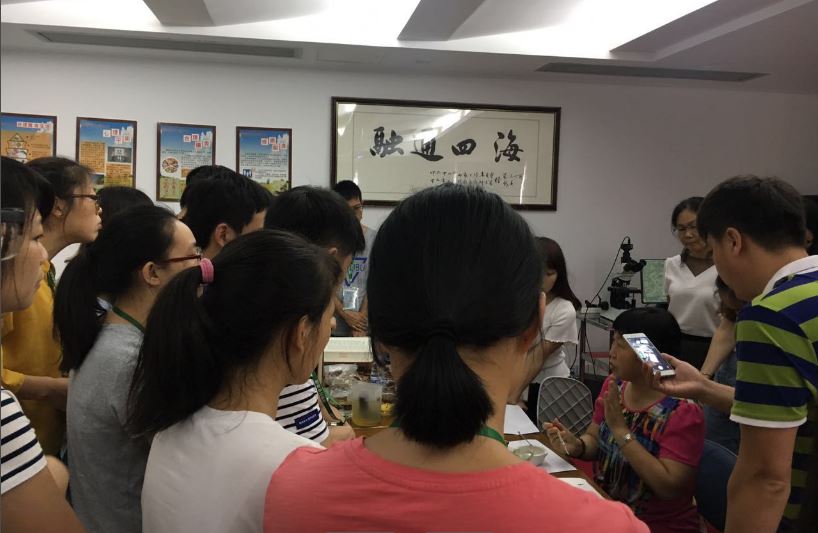在培训开始前,质量中心就根据老师的要求就准备了相关的药材样板、显微鉴别的器材等,摆满了一张桌子。林老师的授课方式边开生面,不是以往的理论式,而是从中药鉴别的典籍入手,到讲解平常使用的各类放大镜、显微镜的特点,让大家颇感实用。培训中间,鼓励大家积极发言、讨论,对重点品种谈各自的认识,每个人开动脑筋,体会性状鉴别的关键方法。中药的显微鉴别自徐国钧院士开创该学科以来,已经成为中药鉴别的特色,但现在随着各类含量检测技术的流行,关注的人不多,操作人员的动手能力都有欠缺。针对这种现状,在实践环节,林老师先请一位员工操作,然后亲自示范讲解中药材、中成药粉末鉴别、手工切片的步骤,边操作边讲解要点,随后让大家各自再操作,大家积极性很高,收获满满。