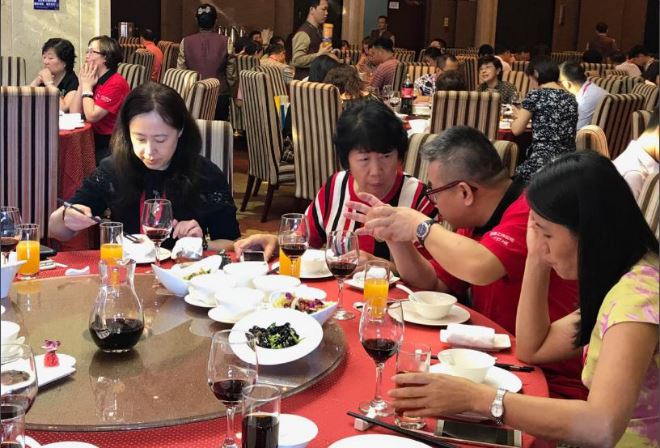 好吧,一石激起千层浪,在曹晓俊的演讲后,来自医药连锁的同行们,纷纷追着草晶华团队成员攀谈,话题中心不离“草晶华”三字,中智药业集团总经理助理方原刚回答完一位来访者,还没来得及举筷,身边又一医药连锁同行落座,向他了解草晶华,方原精神抖擞,再度“话聊”起来……